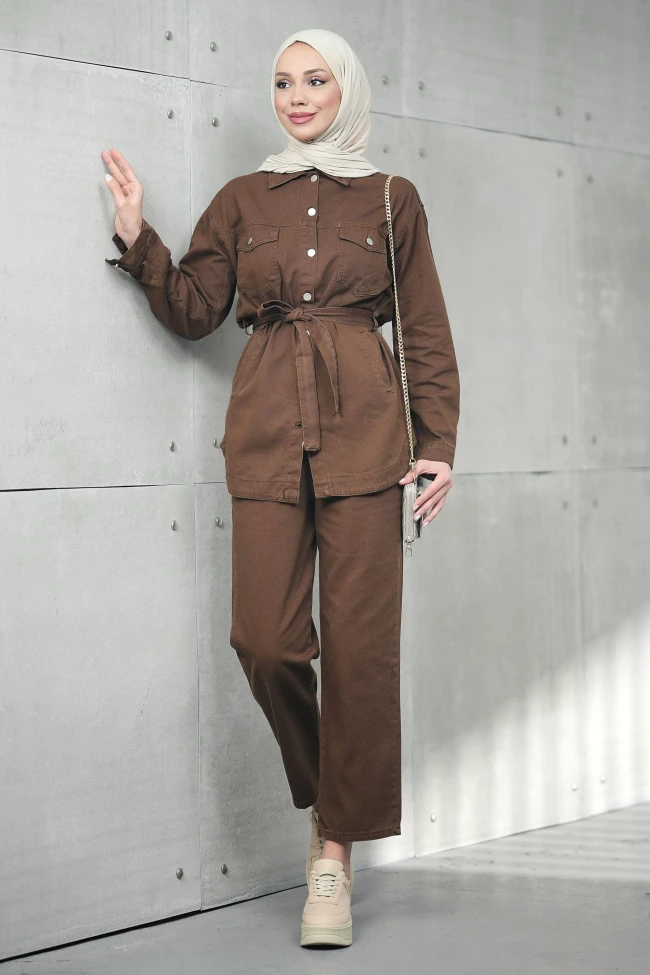 Siyah Bel Bağlamalı Cepli Ceket Pantolonlu Kot Takım Lacivert Bel Bağlamalı Cepli Ceket Pantolonlu Kot Takım Haki Bel Bağlamalı Cepli Ceket Pantolonlu Kot Takım