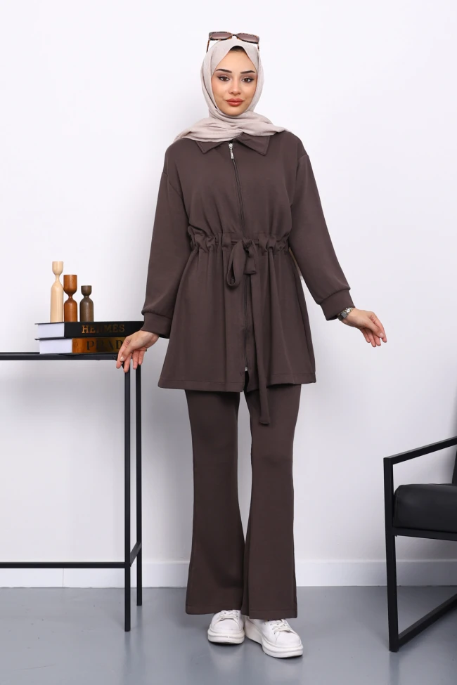 * Ürün Detay : Ürünümüz Modal Kumaştan Üretilmiştir. Tunik ile Pantolon ikili takım şeklindedir. Tunik ön kısmı fermuarlıdır ve bel kısmı kulisan kemer detaylıdır. Pantolon bel kısmı lastiklidir.