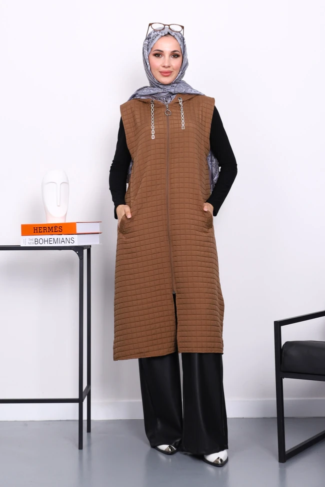 Taş Kapitone Fermuarlı Kapşonlu Yelek Siyah Kapitone Fermuarlı Kapşonlu Yelek