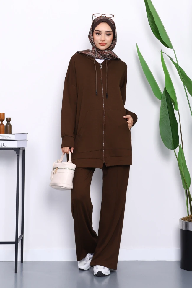 * Ürün Detay : Ürünümüz Modal Kumaştan Üretilmiştir. Tunik ile Pantolon ikili takım şeklindedir. Tunik ön kısmı fermuarlı ve kapüşonlu olarak tasarlanmıştır. Pantolon bel kısmı lastiklidir.