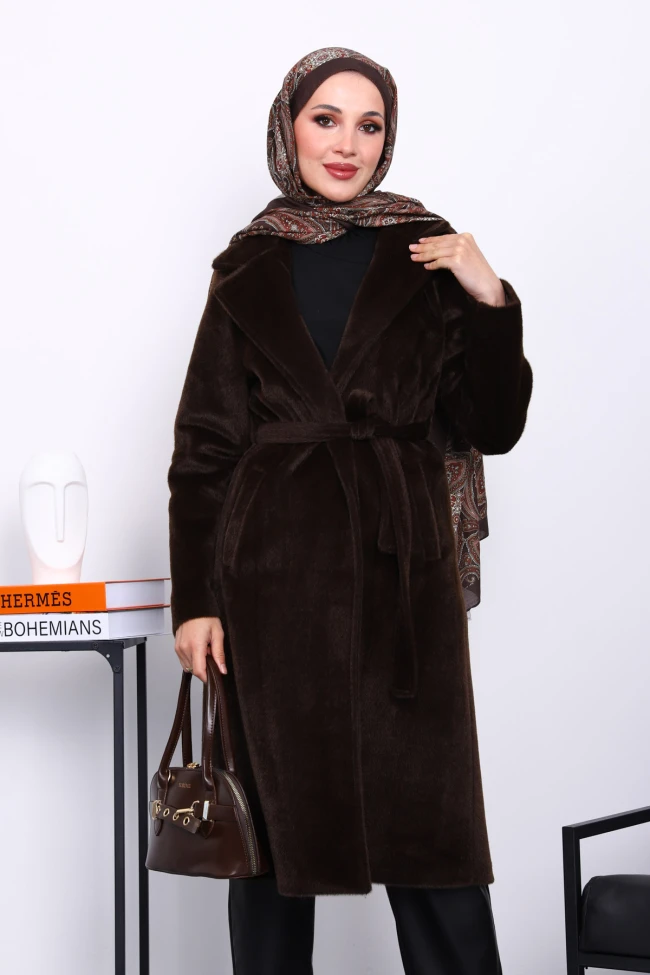 * Ürün Detay : Ürünümüz yeni sezona uygun Angora kumaştan üretilmiştir.  Bel kısmı kuşaklı olup, yan kısımları ceplidir. Yaka kısmı broş detaylıdır.
