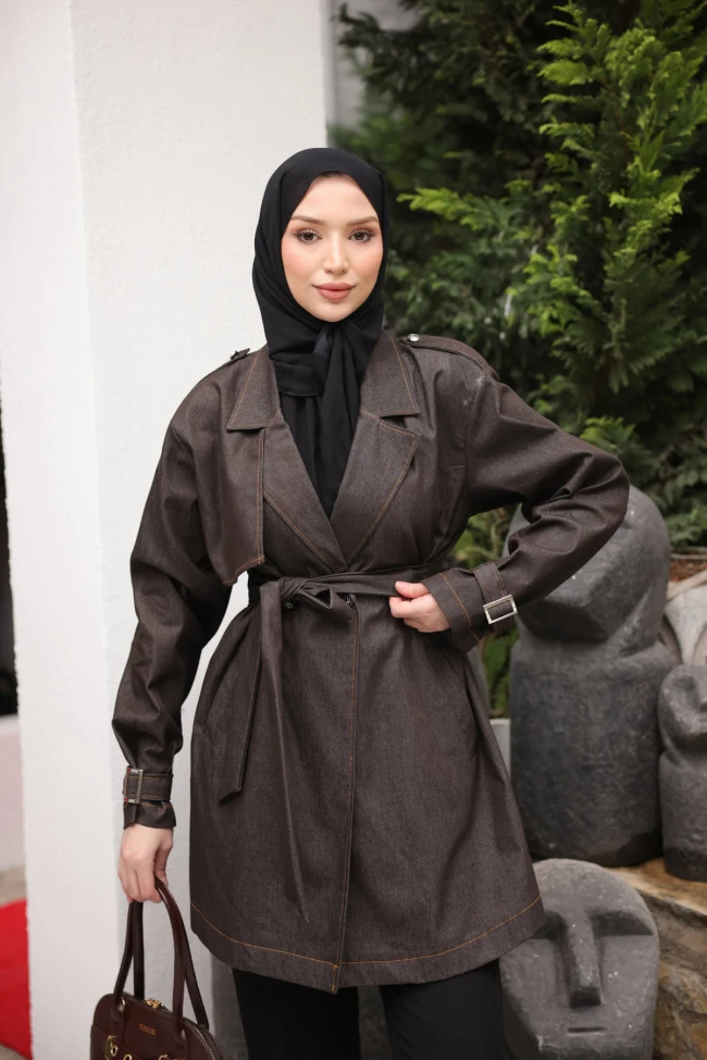 * Ürün Detay : Ceketin en dikkat çekici özelliği, taba tonlarındaki belirgin dikişleri. Bu detay, ceketin kalıbını vurgularken tasarıma modern ve endüstriyel bir hava katıyor.Omuzlardaki apoletler ve kollardaki metal tokalı kemer detayları, geleneksel tarzdan ilham almış.Geniş yakalar ve beldeki kuşak, kullanıcıya silüetini ayarlama imkanı tanıyor. Kuşağın bu şekilde bağlanması, ceketin formunu daha kadınsı bir hatta taşıyor.