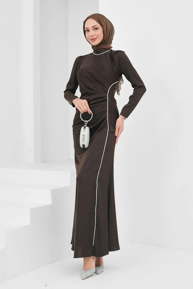 * Ürün Detay : Yeni sezon abiyemiz, modern ve zarif detayları bir araya getiren oldukça şık bir tasarıma sahiptir. Balık kesim formundadır.Sezona uygun saten kumaştan üretilmiştir.Sırt fermuarlıdır.Taş detayları hakimdir. Bel kısmındaki drapeler, hareketli bir görünüm kazandırmaktadır.Beldeki drapelerin toparlayıcı bir görünüm sunar.