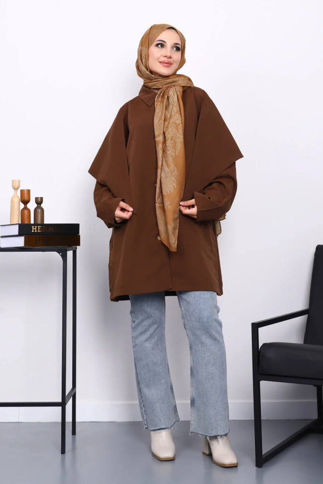 * Ürün Detay : Ürünümüz  Bondik Kumaştan Üretilmiştir. Ön kısmı düğme detaylı olup, yan kısımları ceplidir. Omuz kısmından bel kısmında kadar pelerin detayı yer almaktadır.