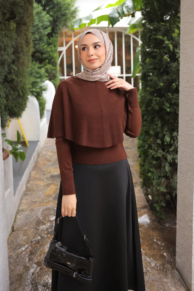 Siyah Pelerin Detaylı Fitilli Triko Kazak Ekru Pelerin Detaylı Fitilli Triko Kazak Lacivert Pelerin Detaylı Fitilli Triko Kazak Bordo Pelerin Detaylı Fitilli Triko Kazak