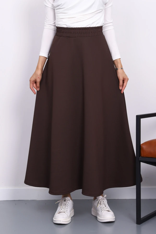 Lacivert Scuba Kloş Etek Ekru Scuba Kloş Etek
