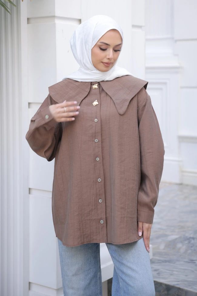 * Ürün Detay : Zarafeti ve konforu bir arada sunan bu özel tasarım tunik, gardırobunuzun en iddialı parçası olmaya aday! Vintage esintili oversize bebe yaka detayıyla dikkat çeken ürün, modern kesimiyle her ortama uyum sağlar.Geniş ve yuvarlak hatlı bebe yaka tasarımıyla stilinize feminen ve özgün bir dokunuş katar.Yakanın hemen altında bulunan gold metalik düğmeler, tuniğe lüks bir hava katarken geri kalan gizli düğme patı temiz bir görünüm sağlar.