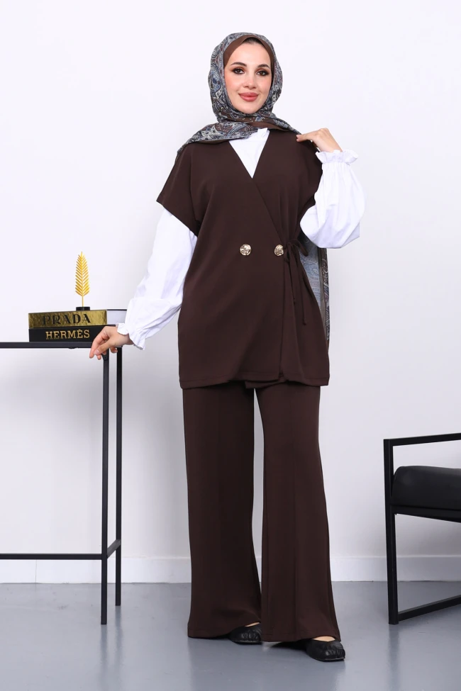 * Ürün Detay : Ürünümüz Modal  Kumaştan Üretilmiştir. Yelek ve Pantolon 2'li takım şeklindedir. Yelek yandan bağlama detaylıdır. Pantolon bel kısmı lastiklidir.
