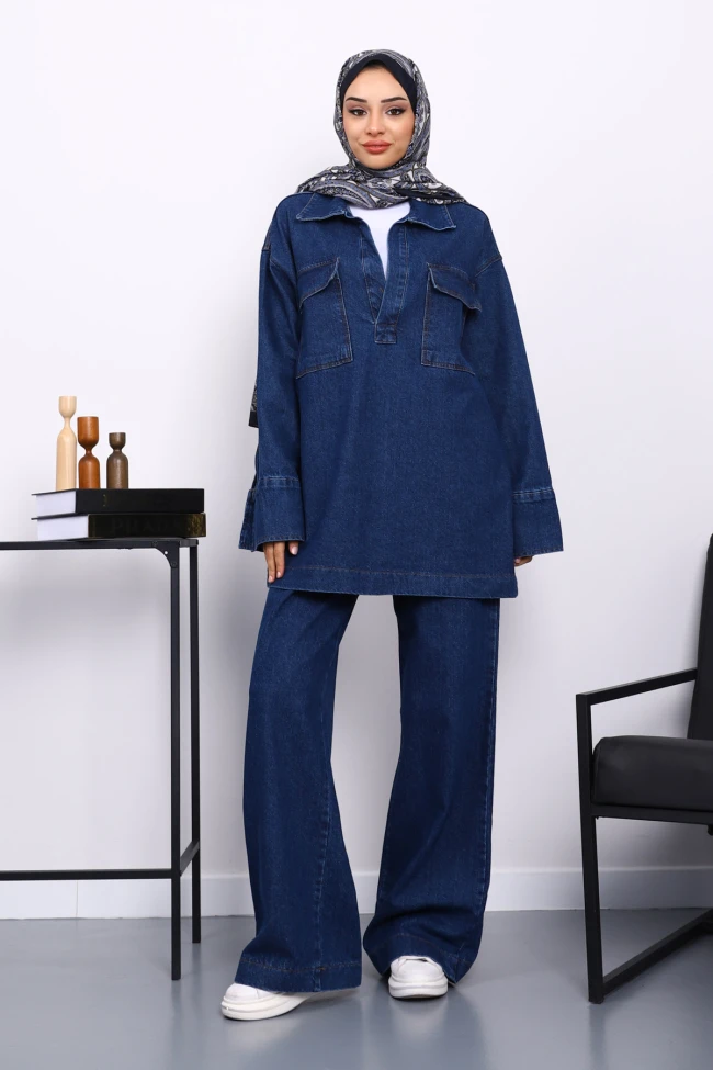 Siyah Cepli Gömlek Pantolonlu Kot Takım Mavi Cepli Gömlek Pantolonlu Kot Takım