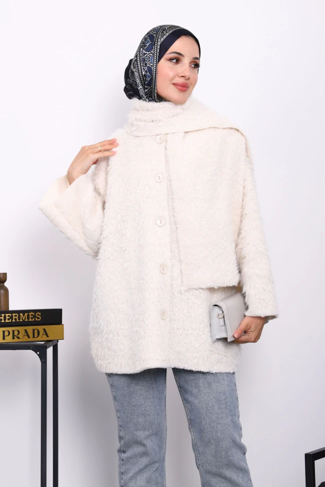 * Ürün Detay : Ürünümüz yeni sezona uygun Angora Yumoş kumaştan üretilmiştir. Ön kısmı düğmeli olup yaka kısmı atkı şeklindedir.