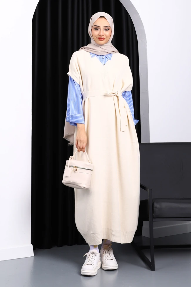 * Ürün Detay : Ürünümüz Triko Kumaştan Üretilmiştir. Gömlek garnili olarak tasarlanmıştır. Bel kısmı kuşaklıdır.
