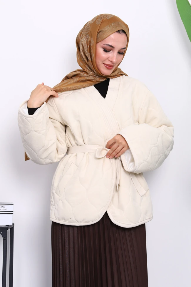 * Ürün Detay : Ürünümüz Kapitone  kumaştan üretilmiştir. Bel kısmı kuşak detaylıdır.