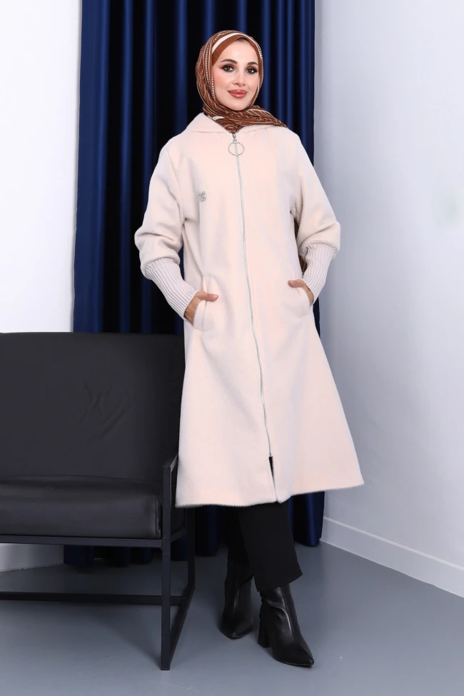 Siyah Kapüşonlu Kolları Triko Angora Kaban Kahverengi Kapüşonlu Kolları Triko Angora Kaban Bordo Kapüşonlu Kolları Triko Angora Kaban