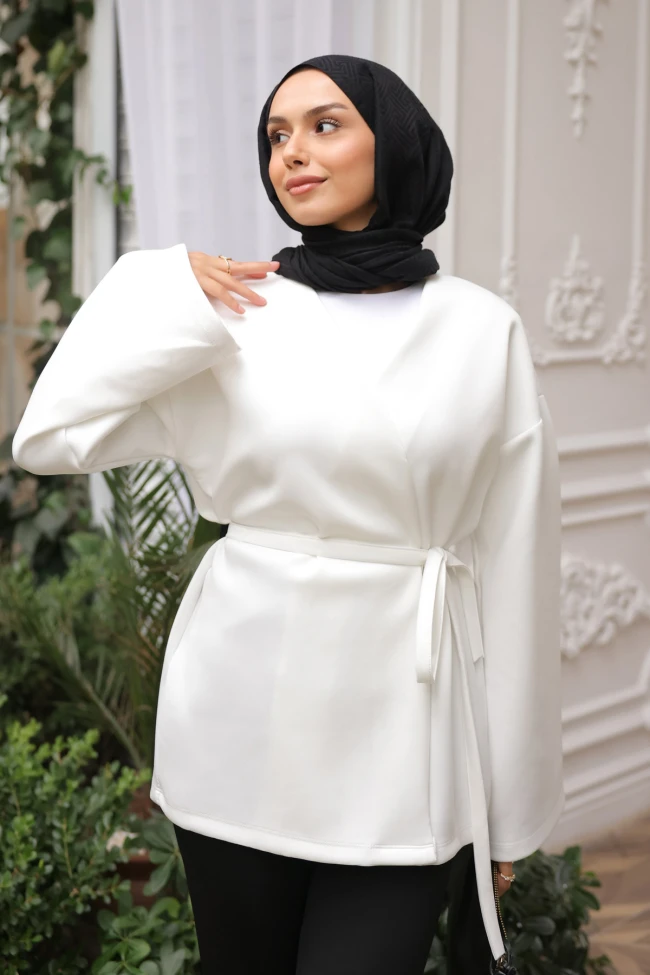 Siyah Kuşaklı Scuba Kimono Kahverengi Kuşaklı Scuba Kimono