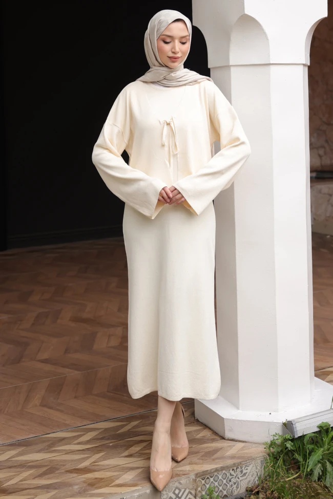 * Ürün Detay : Elbise, üzerindeki kısa hırka detayı sayesinde sanki bir etek-bluz takımıymış izlenimi veriyor. Gösterişten uzak, sade ve düz kesimi sayesinde farklı yaş gruplarına hitap eder. Hem günlük kullanım hem de ofis şıklığı için uygun bir "joker" parçadır."Günün her saatinde şık ve konforlu hissetmek isteyenler için tasarlandı. Özel kesimi sayesinde takım şıklığını tek parçada sunan bu elbise, gardırobunuzun en kurtarıcı parçası olacak.