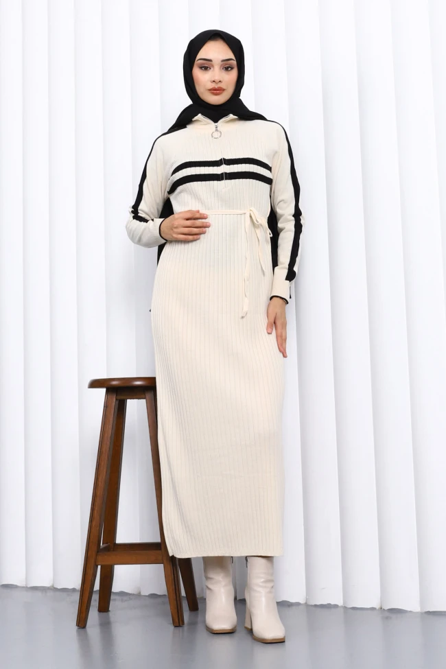 * Ürün Detay : Ürünümüz Fitilli Triko Kumaştan Üretilmiştir. Bel kısmı kuşaklıdır. Yaka kısmı fermuarlıdır.
