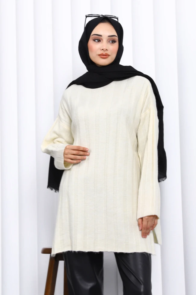 Siyah Yan Yırtmaçlı Fitilli Triko Tunik Bordo Yan Yırtmaçlı Fitilli Triko Tunik Kahverengi Yan Yırtmaçlı Fitilli Triko Tunik