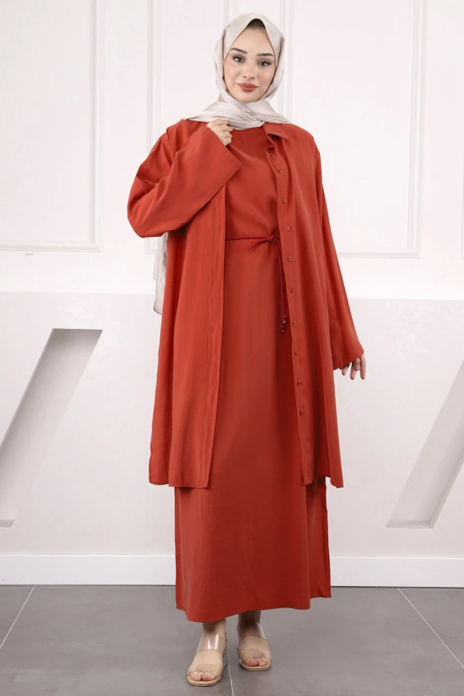 Haki Beli İpli Tunik  Elbise Kombin Takım