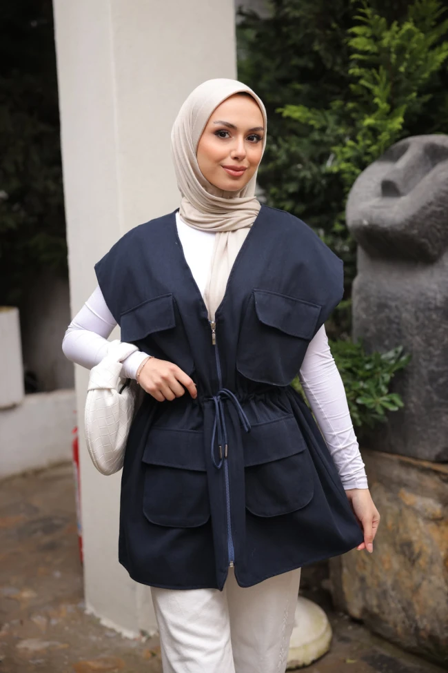 * Ürün Detay : Özellikle geçiş mevsimleri için tasarlanmış, işlevsel ve modern bir parça olarak öne çıkıyor.Üzerindeki dört adet büyük kapaklı cep, yeleğe hem maskülen bir hava katıyor hem de son yılların popüler işlevsel giyim trendine hitap ediyor.Belden büzgülü ve ayarlanabilir ipli yapısı, oversize duruşu bozmadan vücut formuna göre ayarlanabilmesine olanak tanıyor.