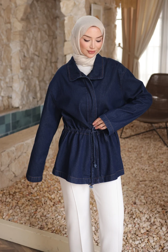 * Ürün Detay : Kot ceket, klasik denim ruhunu modern ve feminen bir dokunuşla yeniden yorumlayan oldukça kullanışlı bir parça.Ceketin en dikkat çekici özelliği belindeki büzgü ve bağlama detayı. Bu tasarım, geniş kesim ceketlere kıyasla vücut hattını daha zarif bir şekilde ortaya çıkararak feminen bir siluet oluşturuyor.Klasik gömlek yaka formu, cekete daha derli toplu ve "temiz" bir görünüm katmış.Salaş ve modern bir hava katan düşük omuz kesimi, ceketin içinde rahat hareket etmenizi sağlar.