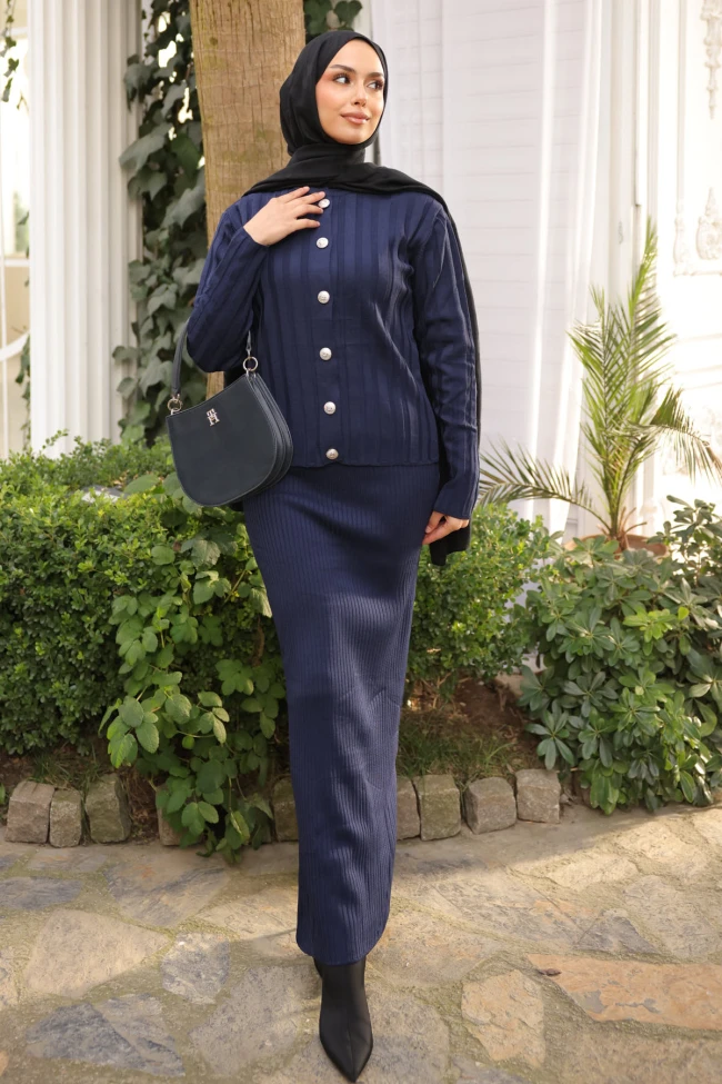 * Ürün Detay : Ürünümüz Triko Kumaştan Üretilmiştir. Hırka ile Elbise ikili takım şeklindedir. Hırka ön kısmı düğmelidir.