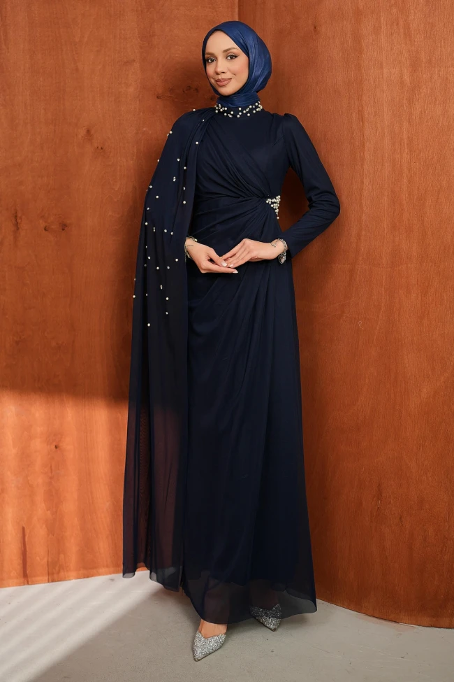 * Ürün Detay : Abiye, özellikle modern ve zarif bir silüet arayanlar için oldukça dikkat çekici bir parça.Bel bölgesinde toplanan asimetrik drapeler, elbiseye hareket katarken aynı zamanda beli daha ince gösteren bir illüzyon yaratıyor.Yakada ve beldeki drapajın başlangıç noktasında kullanılan inci detayları, elbiseye sofistike bir hava katmış. Özellikle omuzdan aşağı dökülen tül pelerindeki inci serpiştirmeleri, tasarıma "peri masalı" estetiği kazandırıyor.Tek omuzdan uzanan tül pelerin, elbiseye dramatik bir duruş katıyor.