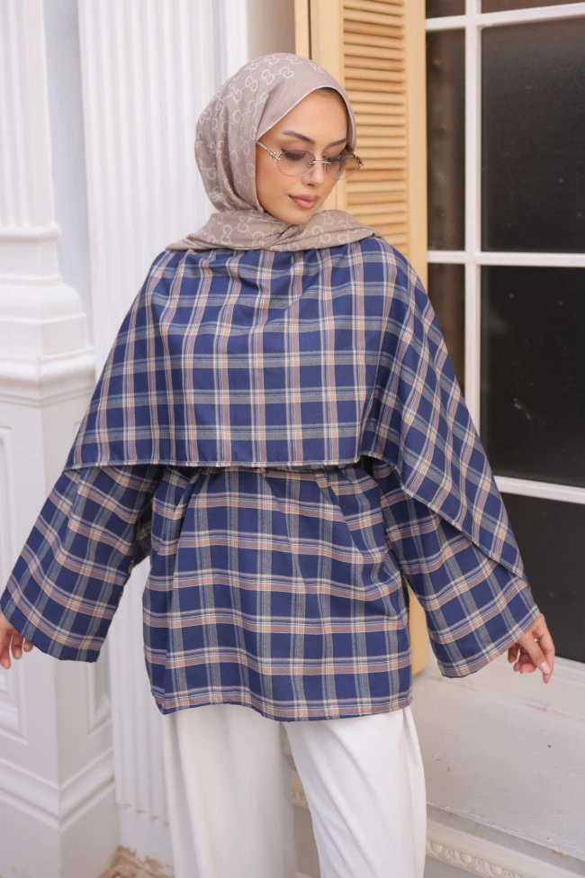 * Ürün Detay : Hem geleneksel hem de modern dokunuşları bir araya getiren oldukça özgün bir tasarıma sahip. Özellikle "pelerin detaylı" yapısıyla standart tunik modellerinden ayrılıyor.Omuzlardan aşağı dökülen geniş kumaş katmanı, tasarıma dramatik ve zarif bir hava katmış. Bu detay, hem hareket özgürlüğü sağlıyor hem de vücut hatlarını çok iyi kamufle ediyor.Beldeki ince kuşak, tuniğin oversize kesimini dengeleyerek silüetin kaybolmasını engellemiş. Beli vurgulaması, pelerinin genişliğiyle güzel bir kontrast oluşturuyor.Bu parça hem günlük şıklık hem de ofis ortamı için "çaba harcamadan şık" görünmenin anahtarı olabilir. Özellikle geniş kollar ve pelerin detayı, kıyafete mimari bir duruş kazandırmış.