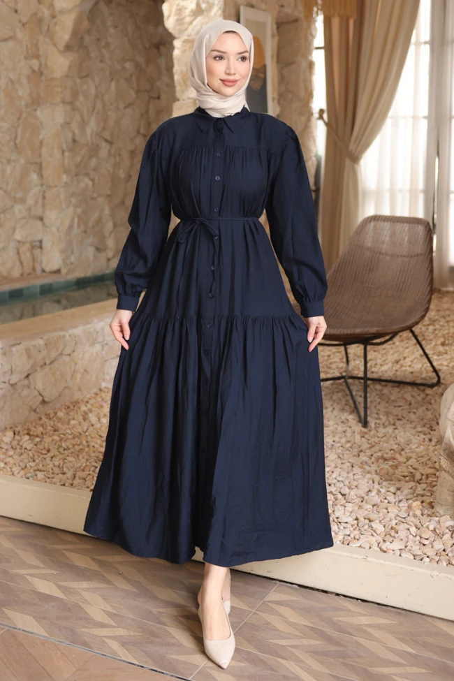 * Ürün Detay : Elbise, hem zarafeti hem de günlük kullanım rahatlığını bir araya getiren çok şık bir tasarım.Belden kuşaklı olması, elbiseye form vererek daha feminen bir hava katmış. Etek kısmındaki katlı  kesim ise tasarıma hareket ve hacim kazandırıyor.Gömlek yaka detayı elbiseye ciddi ve düzenli bir görünüm verirken, balon kollar modern bir dokunuş sağlıyor.