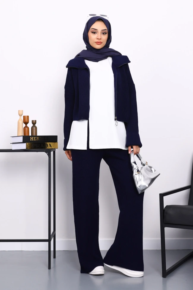 Taş Fermuarlı Üçlü Triko Takım Siyah Fermuarlı Üçlü Triko Takım Füme Fermuarlı Üçlü Triko Takım Kahverengi Fermuarlı Üçlü Triko Takım Bordo Fermuarlı Üçlü Triko Takım