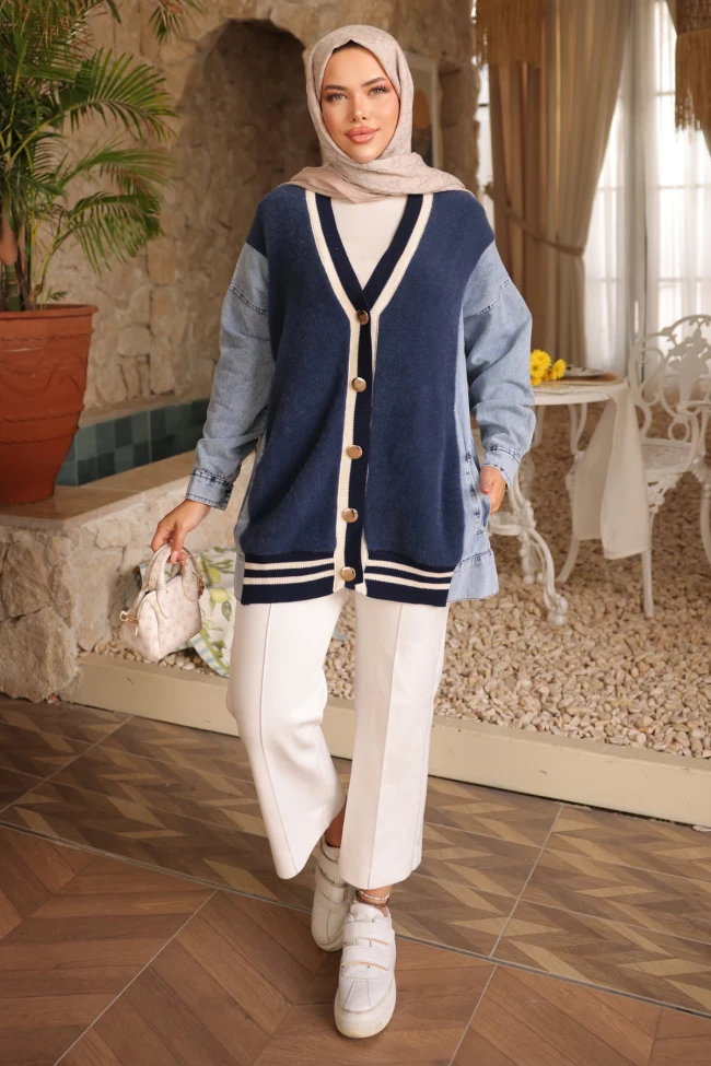 * Ürün Detay : Ürünümüz yeni sezona uygun Kot Garnili Yumoş Triko kumaştan üretilmiştir. Ön kısmı düğme detaylıdır. Kol kısımları kot garnilidir.