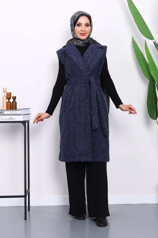 Taş Kruvaze Yaka Kuşaklı Keçe Yelek Antrasit Kruvaze Yaka Kuşaklı Keçe Yelek Koyuv Vizon Kruvaze Yaka Kuşaklı Keçe Yelek