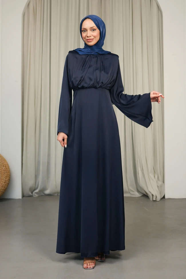* Ürün Detay :  Abiyemizdeki yakadan başlayan büzgülü yapı, göğüs bölgesinde hacimli ve sofistike bir görünüm oluşturuyor. Abiye modelimizdeki detay, üst bedeni daha formda ve hareketli gösteriyor.Genişleyerek inen kollar, elbiseye hem nostaljik bir hava katıyor hem de modern tesettür giyimde aranan o rahat ve dökümlü şıklığı sağlıyor.Omuzlar vatkalıdır.Sadelikten gelen gücü sevenler için ideal bir tercih.