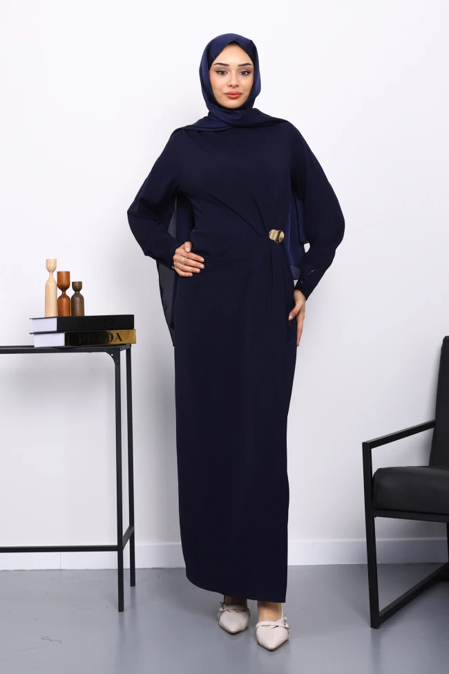 Siyah Önü Drapeli Tokalı Krep Elbise Mürdüm Önü Drapeli Tokalı Krep Elbise Olive Önü Drapeli Tokalı Krep Elbise Kahverengi Önü Drapeli Tokalı Krep Elbise