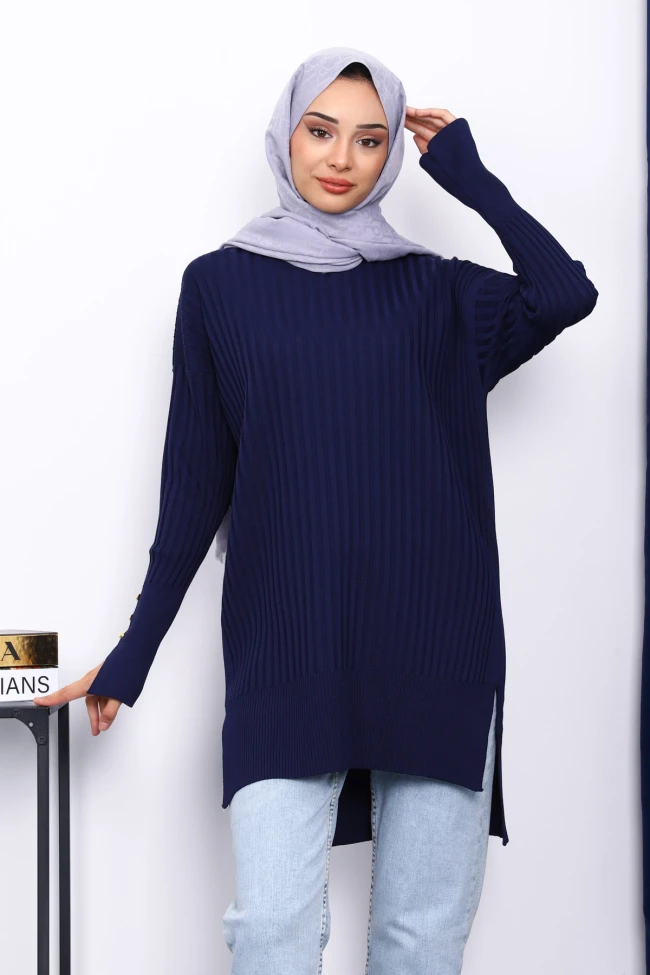 * Ürün Detay : Ürünümüz yeni sezona uygun Triko kumaştan üretilmiştir.  Arka kısmı ön kısmından uzun olarak olarak tasarlanmıştır. Kol kısımları işlevsiz düğme detaylıdır.
