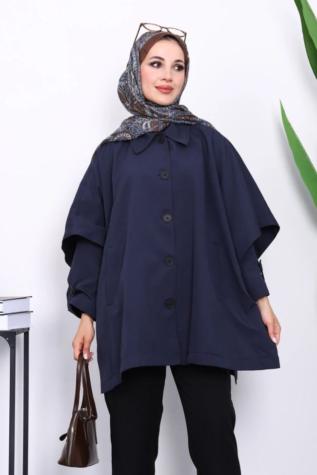 Açık Haki Oversize Düğmeli Panço Trenç Kahverengi Oversize Düğmeli Panço Trenç Siyah Oversize Düğmeli Panço Trenç