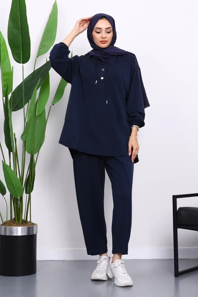 * Ürün Detay : Yeni Sezona Uygun Cupra Kumaştan üretilmiştir. Tunik ile Pantolon ikili takım şeklindedir. Tunik ön kısmı çıt çıt detaylı ve kapüşonludur. Yan kısımları ceplidir. Pntolon bel kısmı lastiklidir.