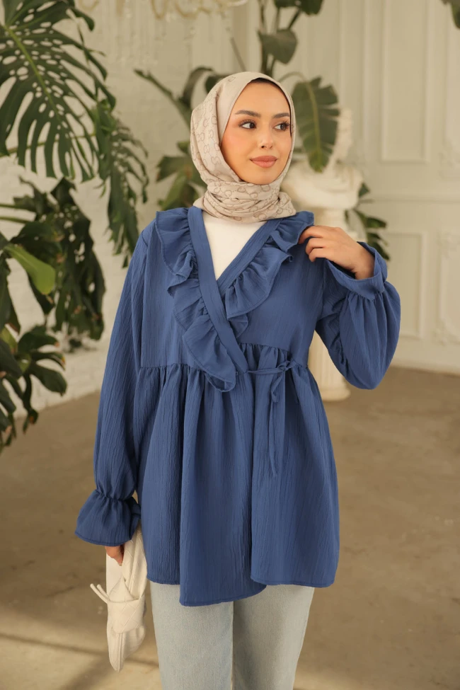 * Ürün Detay : Fırfır detayının hakim olduğu tunik modelimiz bürümcük kumaştan üretilmiş olup farklı renk seçenekleri mevcuttur. Kol lastiklidir. Farklı alt giyim gruplarıyla kombininizde tercih edebilirsiniz.