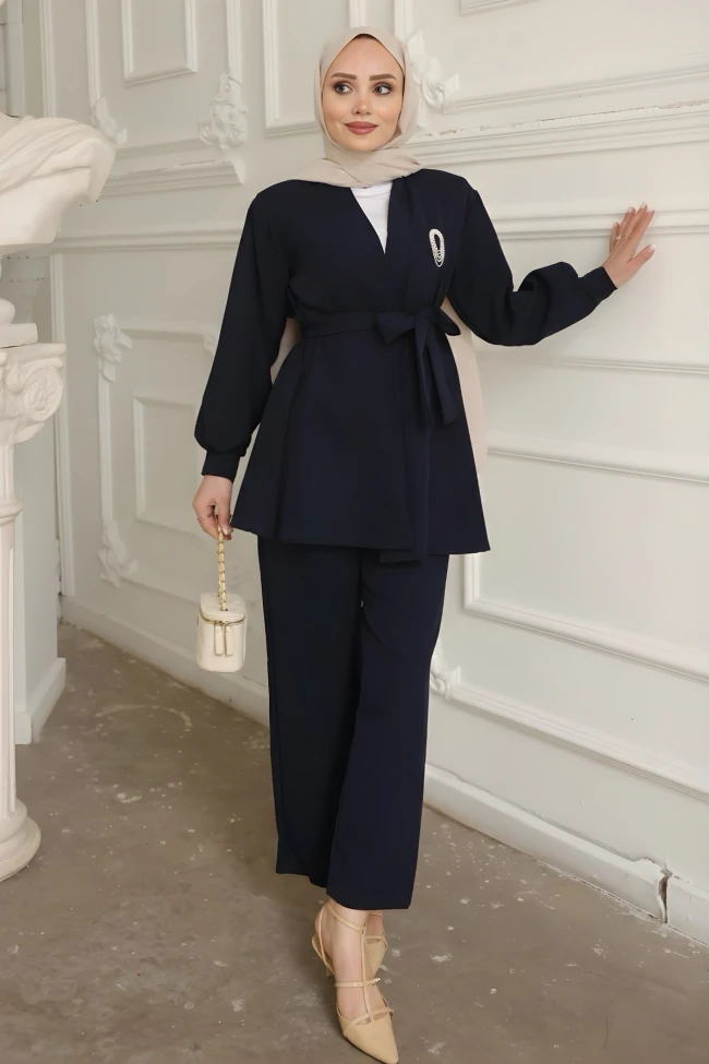 * Ürün Detay : Yeni sezon takımımız için çaba gerektirmeyen şıklık diyoruz. Hem özel bir akşam yemeğinde hem de şık bir ofis gününde giyilebilir.Pantolon ve üstün aynı renk olması, görsel bir kesinti oluşturmadığı için kişiyi olduğundan daha uzun ve ince gösterir.Balon kol ve manşet yapısı kullanılmış. Bu, takıma klasik bir ceketten ziyade daha feminen ve modern bir hava katıyor.Pantolon bol paça formunda. Üstün dökümlü yapısıyla uyum içinde, akıcı bir silüet oluşturuyor.
