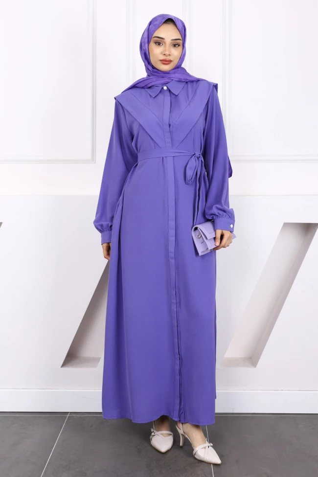 * Ürün Detay : Ürünümüz Linda Krep kumaştan üretilmiştir. Ön kısmı düğmeli olup, bel kısmı kuşaklıdır.