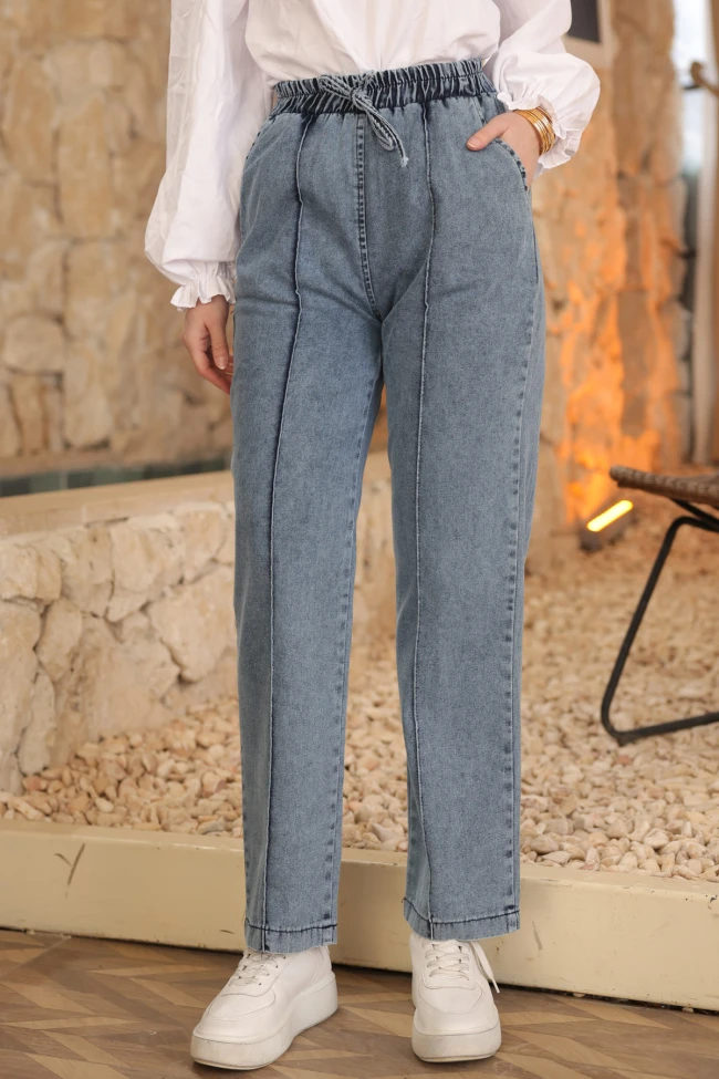 Siyah Bel Lastikli Çimalı Kot Pantolon Lacivert Bel Lastikli Çimalı Kot Pantolon Füme Bel Lastikli Çimalı Kot Pantolon
