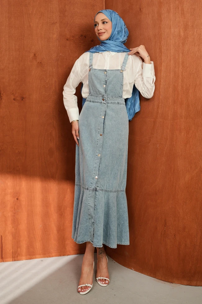 * Ürün Detay : Ürünümüz Kot kumaştan üretilmiştir. Modelimizde yer alan metalik düğmeler açılmaktadır. Omuz askılardan boy ayarlanılabilir.