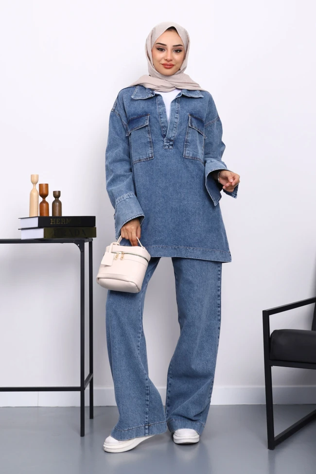 Siyah Cepli Gömlek Pantolonlu Kot Takım Koyu Mavi Cepli Gömlek Pantolonlu Kot Takım