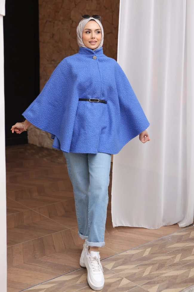 * Ürün Detay : Panço, hem dokusu hem de rengiyle modern ve enerjik bir duruş sergiliyor.Buklet dokusu, parçaya zengin ve kaliteli bir hacim kazandırmış. Bu tür kumaşlar hem sıcak tutar hem de formunu kolay kaybetmez.Geniş pelerin kesimi, hareket özgürlüğü sağlarken modern bir silüet oluşturuyor. Dik yaka ve tek düğme detayı ise minimal ama etkili bir dokunuş olmuş.İnce bir kemer kullanımı beli vurgulayarak vücut hatlarını dengeli bir görünüme kavuşturmuş.