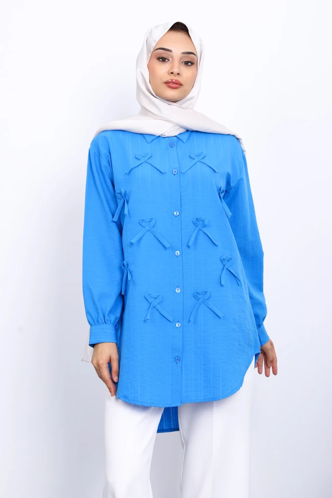 * Ürün Detay : Ürünümüz Bürümcük kumaştan üretilmiştir. Tunik ön kısmı düğmeli olup, mink fiyonk detayları yer almaktadır.