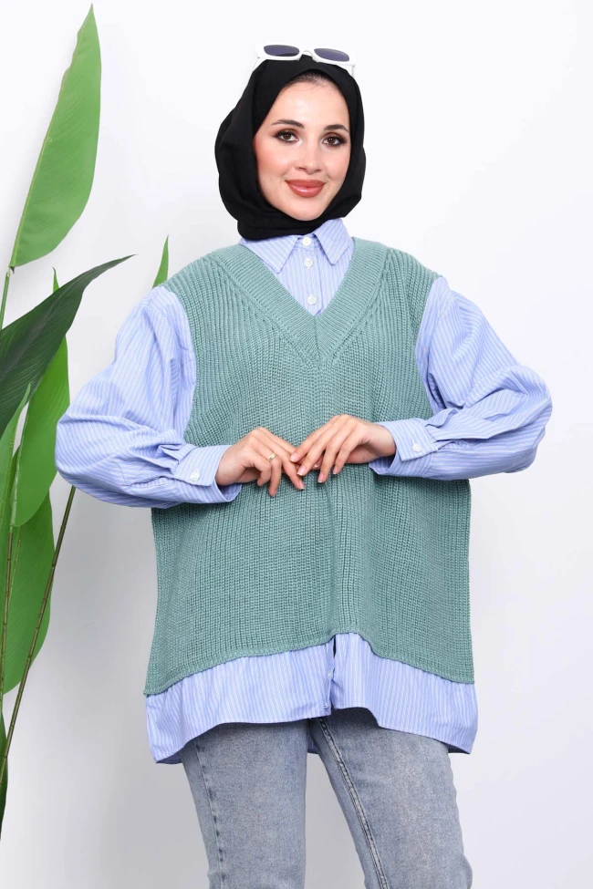 * Ürün Detay : Ürünümüz Triko Garnili Kumaştan Üretilmiştir. Triko yelek gömlek ile bütün şeklindedir.