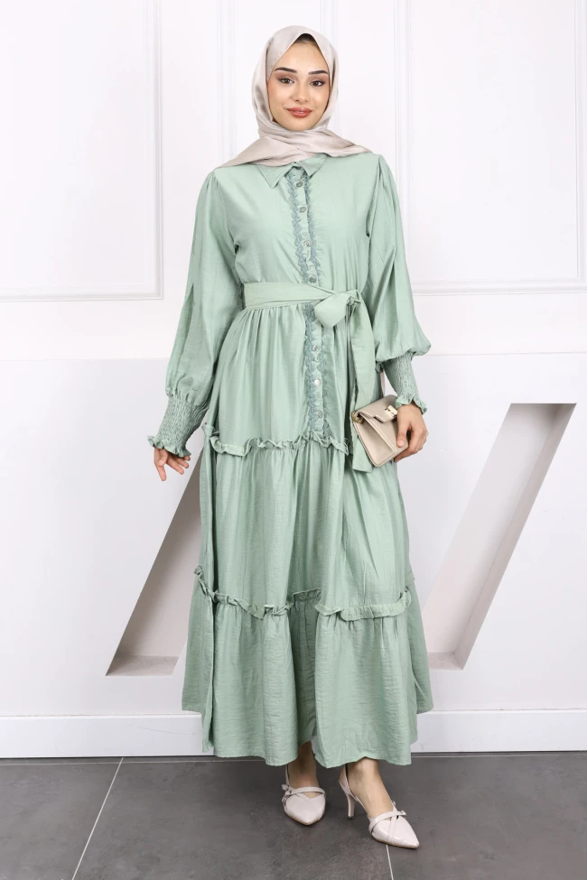 * Ürün Detay :  Ürünümüz Cotton kumaştan üretilmiştir. Ürünümüz ön kısmı yarım düğmeli ve bel kısmı kuşaklıdır.