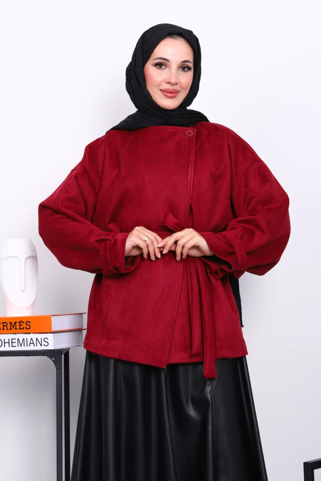 * Ürün Detay : Ürünümüz  Süet kumaştan üretilmiştir.  Bel kısmı kuşaklıdır. Yaka kısmı düğmelidir.