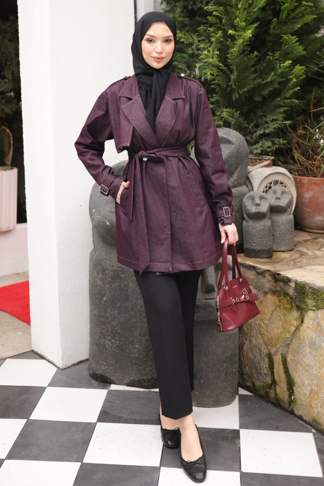 Kahverengi Kruvaze Yaka Cepli Kuşaklı Ceket Lacivert Kruvaze Yaka Cepli Kuşaklı Ceket