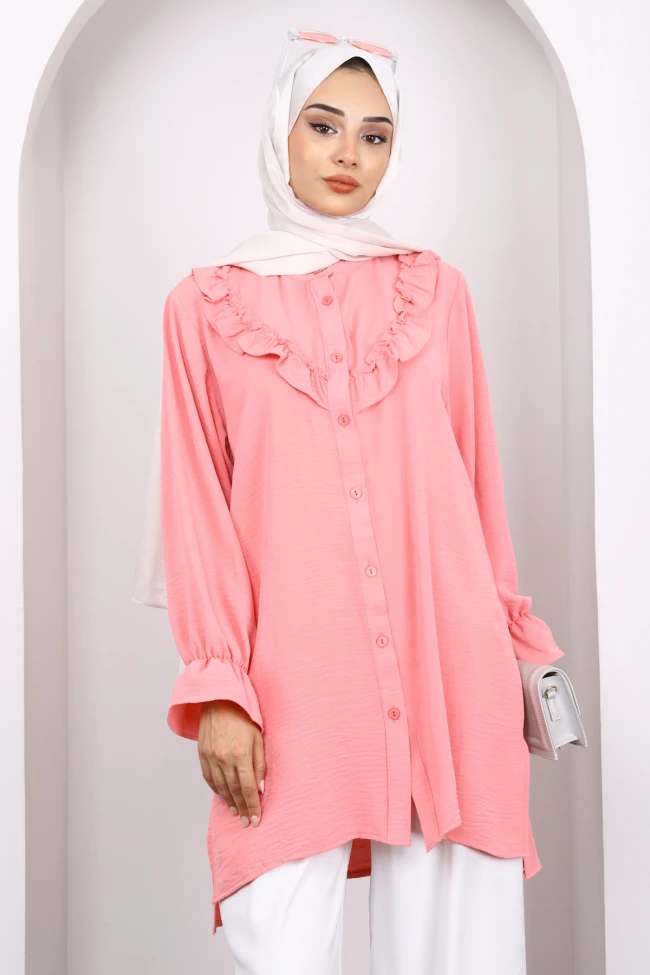Bej Önü Fırfırlı Ayrobin Tunik Ekru Önü Fırfırlı Ayrobin Tunik