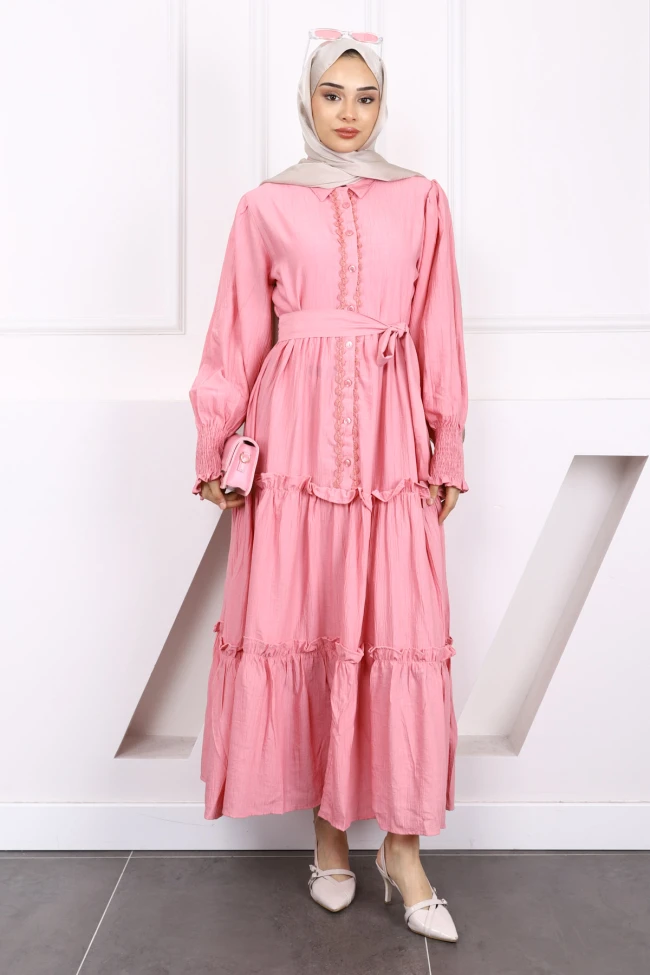 * Ürün Detay :  Ürünümüz Cotton kumaştan üretilmiştir. Ürünümüz ön kısmı yarım düğmeli ve bel kısmı kuşaklıdır.